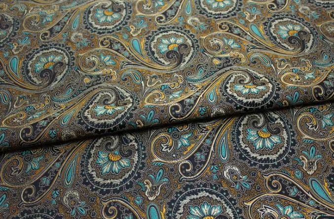 Black color brocade fabric with paisley pattern, jacquard fabric, Cosplay dress fabric, by the yard